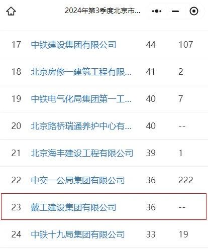 近日,據(jù)建設(shè)通發(fā)布的最新數(shù)據(jù)顯示,2024年第三季度北京市建筑施工企業(yè)中標(biāo)數(shù)量排行榜中,戴工集團(tuán)憑借卓越的市場(chǎng)表現(xiàn)與項(xiàng)目實(shí)力位列第23位。這一成績(jī)的取得,不僅彰顯了戴工集團(tuán)作為建筑企業(yè)的深厚底蘊(yùn)與強(qiáng)勁發(fā)展勢(shì)頭,更體現(xiàn)了其在復(fù)雜多變的市場(chǎng)環(huán)境中,憑借精準(zhǔn)的戰(zhàn)略布局、專業(yè)的施工能力和持續(xù)的技術(shù)創(chuàng)新,所展現(xiàn)出的卓越競(jìng)爭(zhēng)力和高效執(zhí)行力。